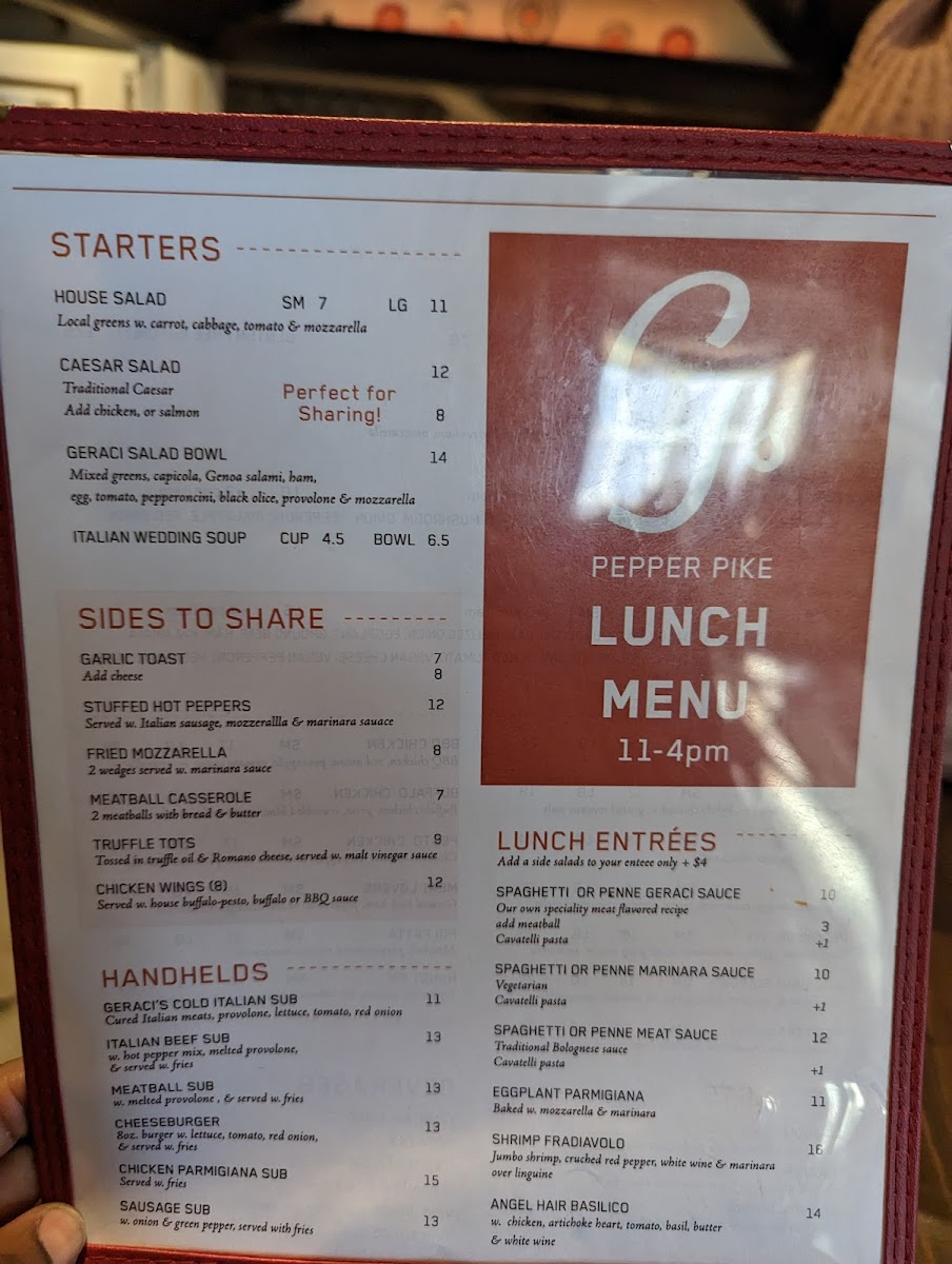 Welcome to Geraci's Restaurant Pepper Pike, an inviting Italian eatery tucked away on Chagrin Boulevard. Known for its warm ambiance and attentive service, this establishment masterfully blends a cozy atmosphere with a robust menu featuring beloved Italian classics. Patrons rave about the gluten-free offerings, such as the delightful gluten-free pasta enveloped in a rich marinara sauce, satisfying a diverse range of dietary needs.